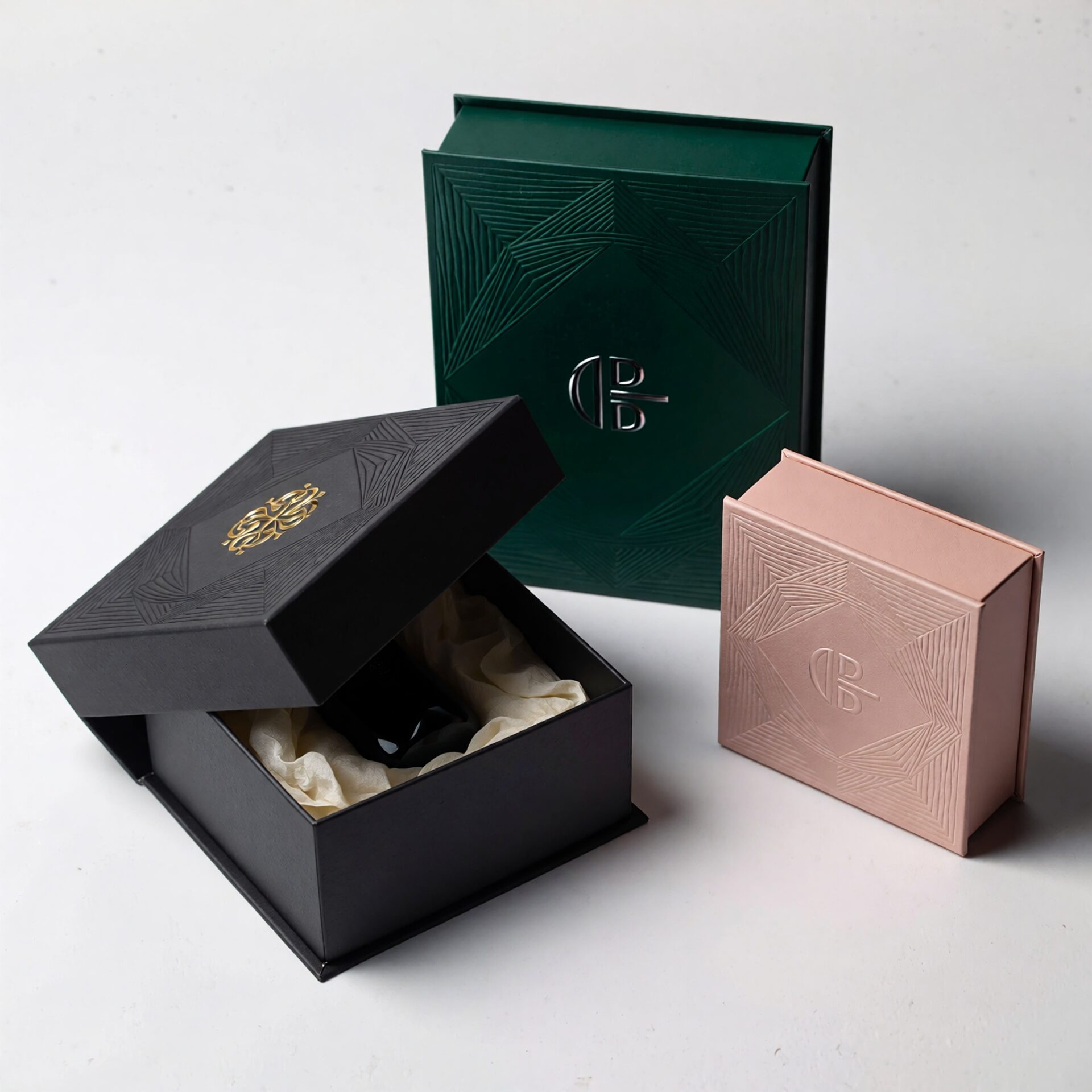 Premium thick-board rigid boxes with magnetic closures, ribbon pulls and luxury finishes. Gold foil, embossing and debossing available. The premium choice for gifting, retail and corporate packaging.