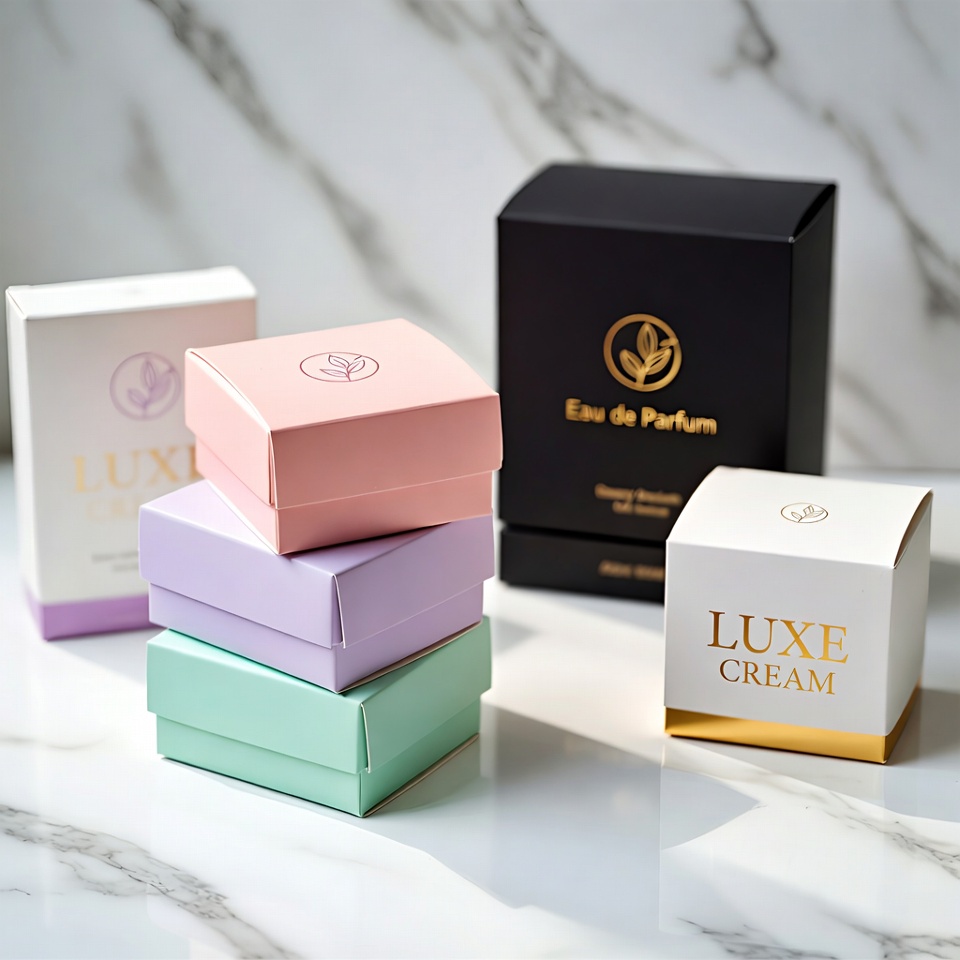 Custom soap boxes, perfume boxes, cream boxes, lotion boxes and makeup packaging. Elevate your beauty brand with packaging that matches your product quality.